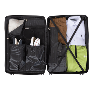 Constructed of polypropylene Top grip handle Telescopic push-button handle Two-way zip-around closure Side grip handle 360-degree multidirectional single airflow eightwheel system One inside mesh zip pocket One inside shoe pocket Inside security cross-straps Integrated 3-digits TSA lock for 24″ & 28″ 10-year manufacturer’s warranty Dimensions: 17.3 x 11 x 25.5 in / 43.25 x 27.50…