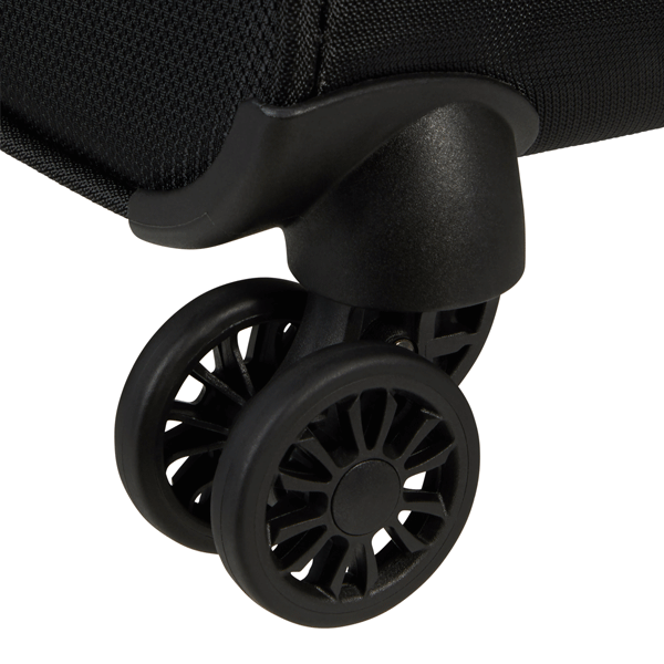 Quatre roues jumelées à flux d’air Spinner pour que vous puissiez faire rouler facilement une valise verticale.