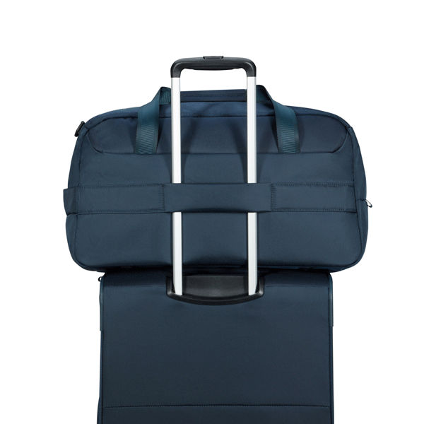 SmartSleeve vous permet de glisser le sac sur la plupart des poignées de tirage de valise, pour qu’il puisse reposer en
